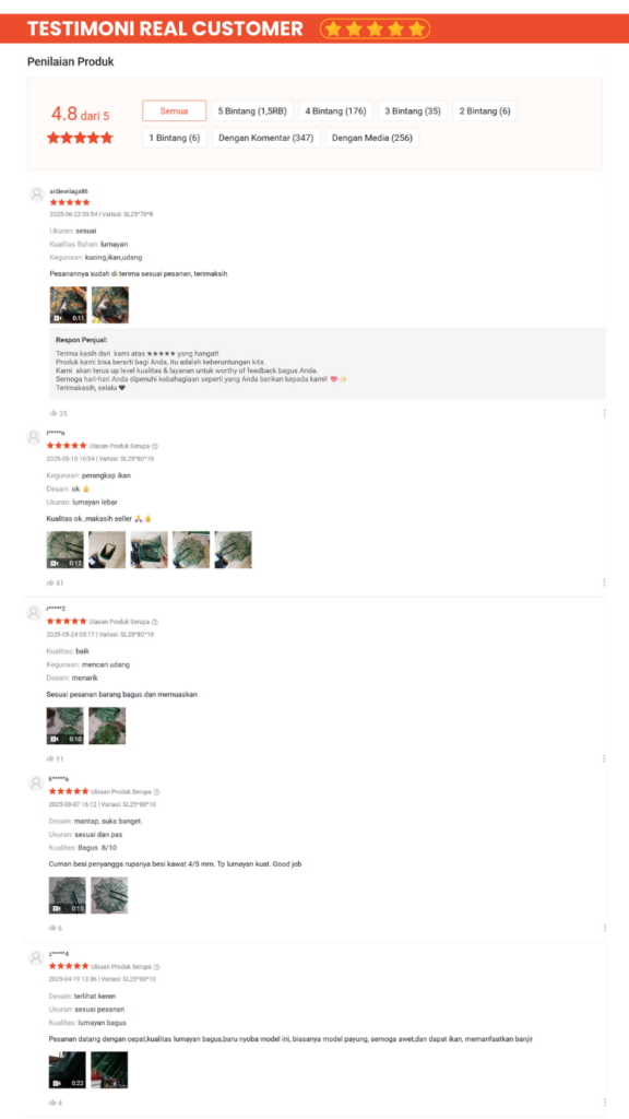 ✅ Lubang di bagian dalam sangat kecil sehingga hasil tangkap sulit kabur